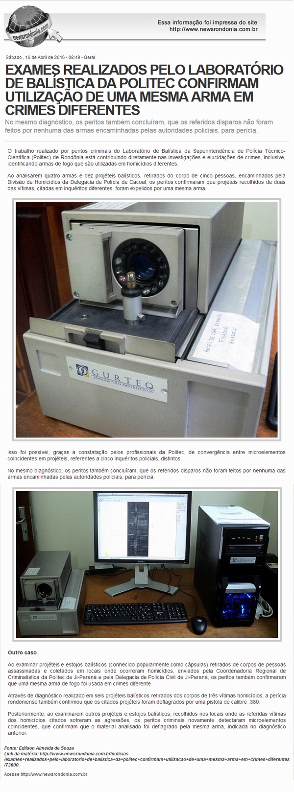 escaneamento ARSENAL instalados no Instituto Nacional de Criminalística