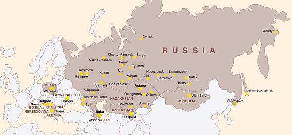 Sudão, Tailândia, Transnistria, Turcomenistão, Uzbequistão, Zâmbia.
