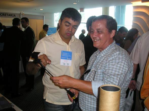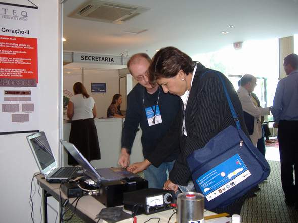 Estante da GURTEQ: Representante dos peritos do México testando os equipamentos